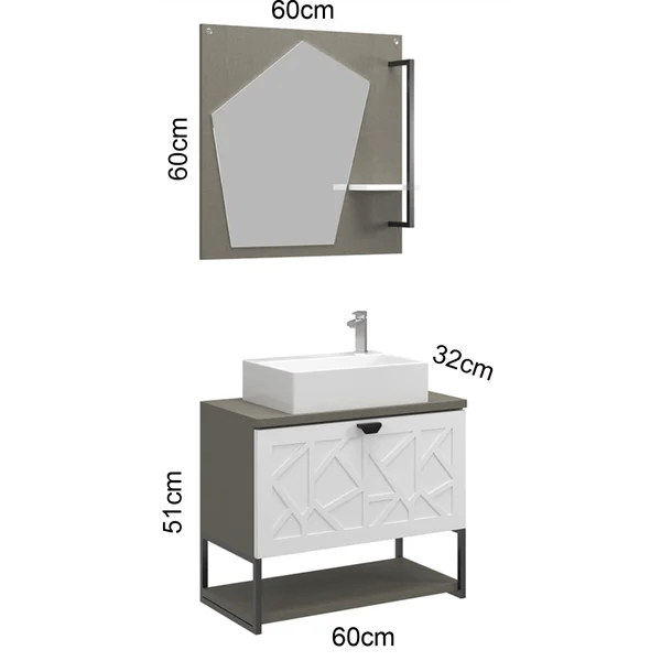 Espelheira: 60 cm (C) x 13 cm (P) x 60 cm (A)