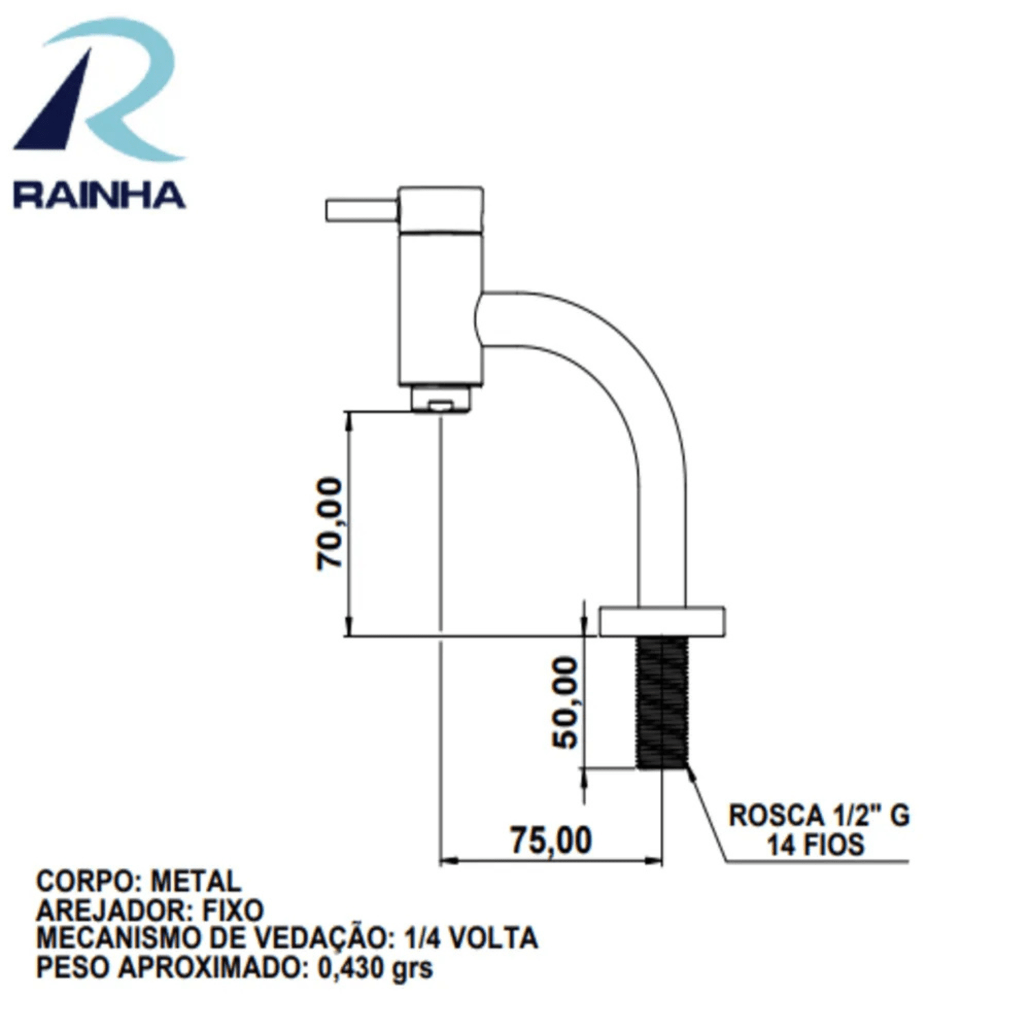 Seu mecanismo de 1/4 de volta proporciona um acionamento suave e preciso, garantindo maior controle da vazão e economia de água. Com 14 cm de altura, esse modelo é perfeito para instalação em bancadas, oferecendo praticidade e conforto no manuseio.